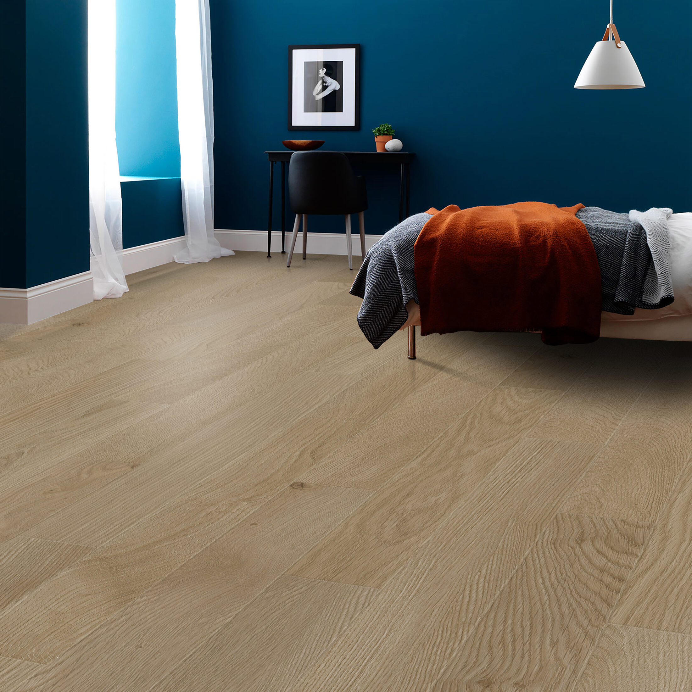 Vinilinės grindys „Texas Oak“ – ne tik stilingos, bet ir itin tylios bei šiltos. Dėl savo struktūros jos slopina garsą, todėl žingsniai ir kiti pašaliniai garsai skamba tyliai ir švelniai. Malonus paviršiaus pojūtis suteikia šilumos ir komforto jausmą, todėl ši vinilinė danga – puikus pasirinkimas šeimos namams, kur vertinamas jaukumas ir ramybė.
